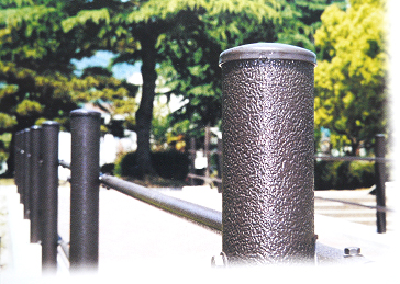 サンド鋼板は表面の微細な凹凸効果による優れた貼り紙防止機能があり、景観材等の素材としても適しています。