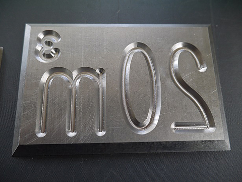 加工するのは、数字と文字の反対の形、大小も様々で抜き勾配も少なく丁寧な仕上げが求められました。 それにお客様からの図面もありませんでしたので、図面をおこす事から始まり、少々厄介な仕事でしたが、ご覧のように綺麗にコンクリートに数字が浮き上がりました。