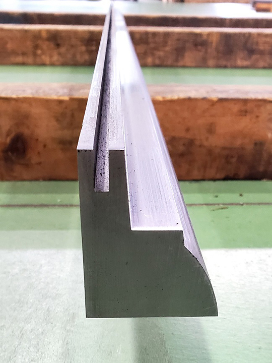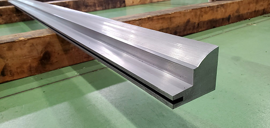 幅5mm×深さ14mmのミゾとR加工が特徴的な目地棒です。ミゾの加工は細く深いほどに難しく、しかもミゾを入れる部分もわずか15mmの幅しかないので特に精密な作業が必要になります。ゆるやかな抜き勾配もなめらかに仕上がっています。さらに、コンクリート製品の出来の美しさを左右するR部の仕上げも大変美しく、複雑な形状ながら各部の寸法精度が非常に高い製品です。